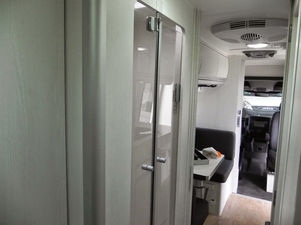 | Opção de máquina de lavar compacta no bagageiro para esse tipo de motorhome compacto cai como uma luva. |